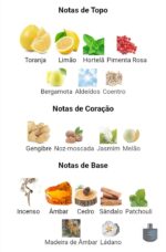 Notas de Topo: Grapefruit, Cedro e Pimenta Rosa: Uma abertura cítrica e aromática, revitalizante e energizante.