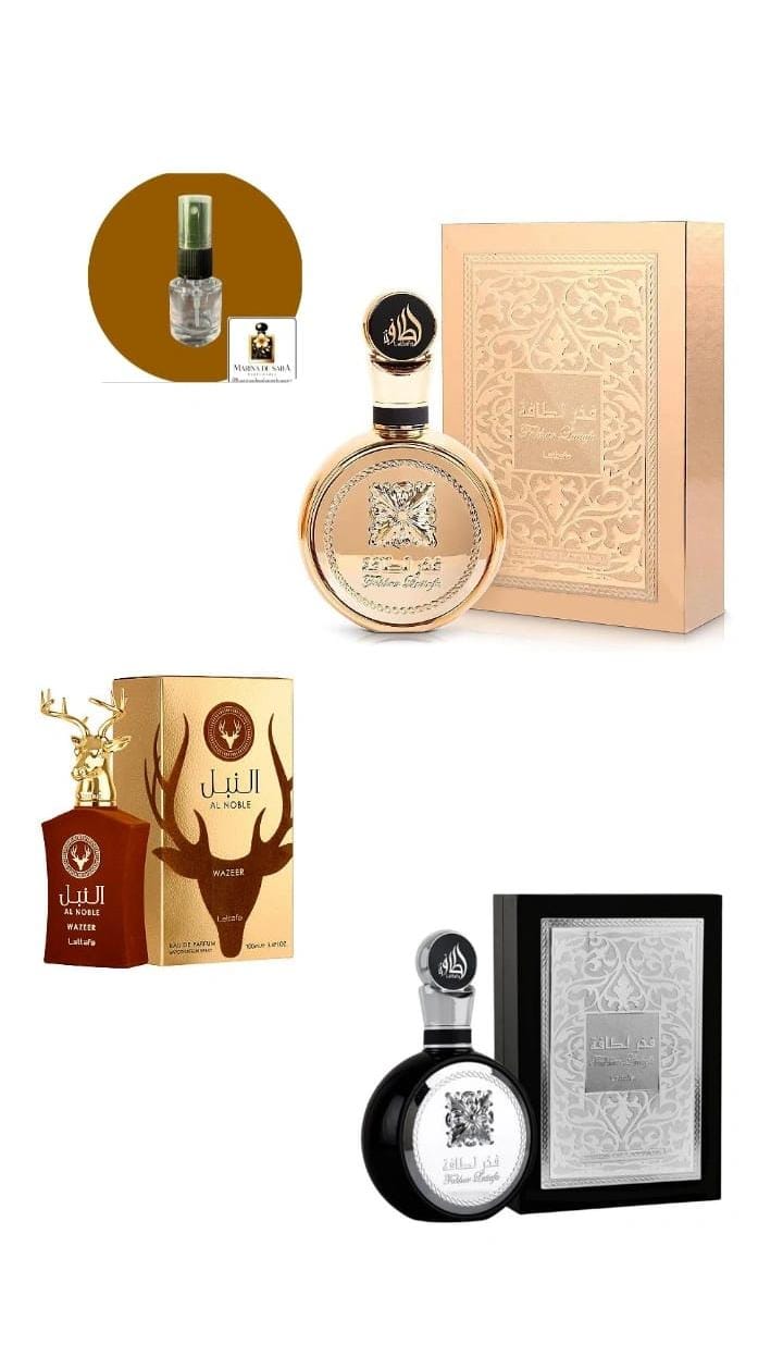 Combo do Fakhar Gold/Extrait +Fakhar Black +Wazeer ( 3 Decant de 5ml )