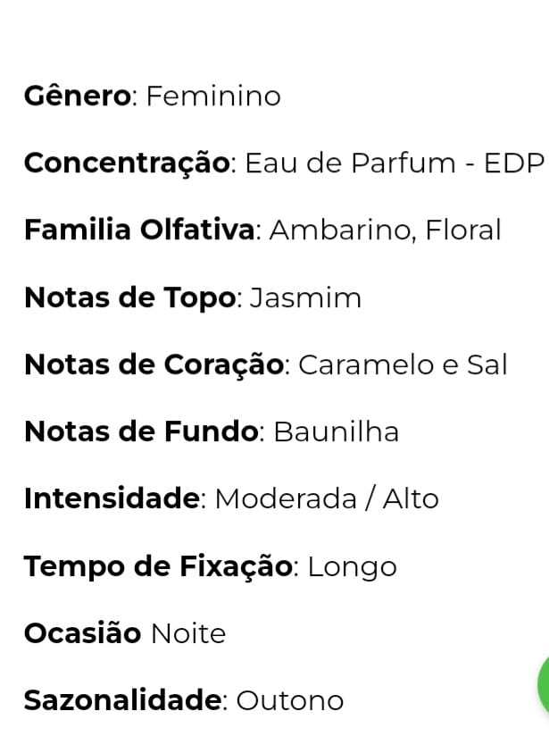 • Concentração: Eau de Parfum