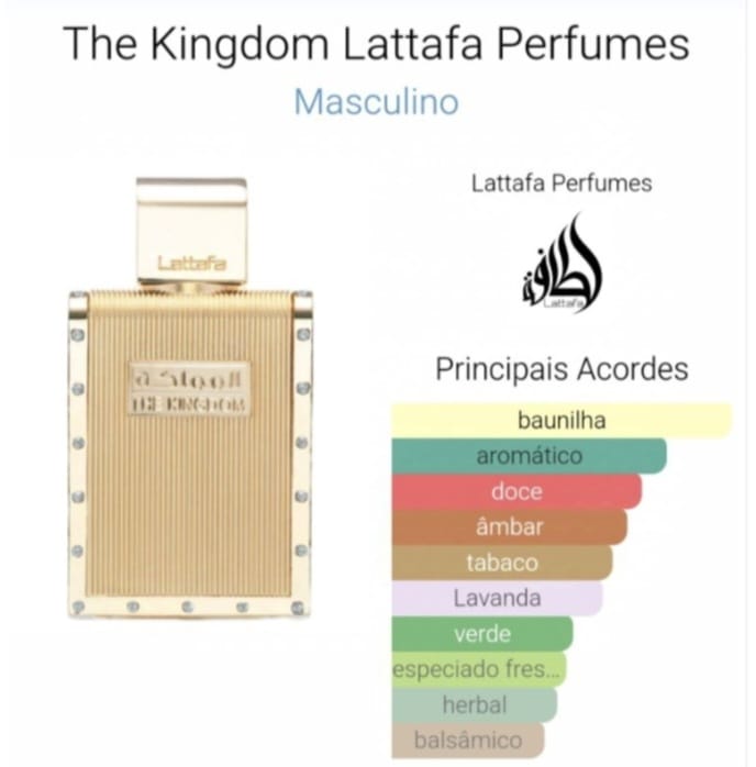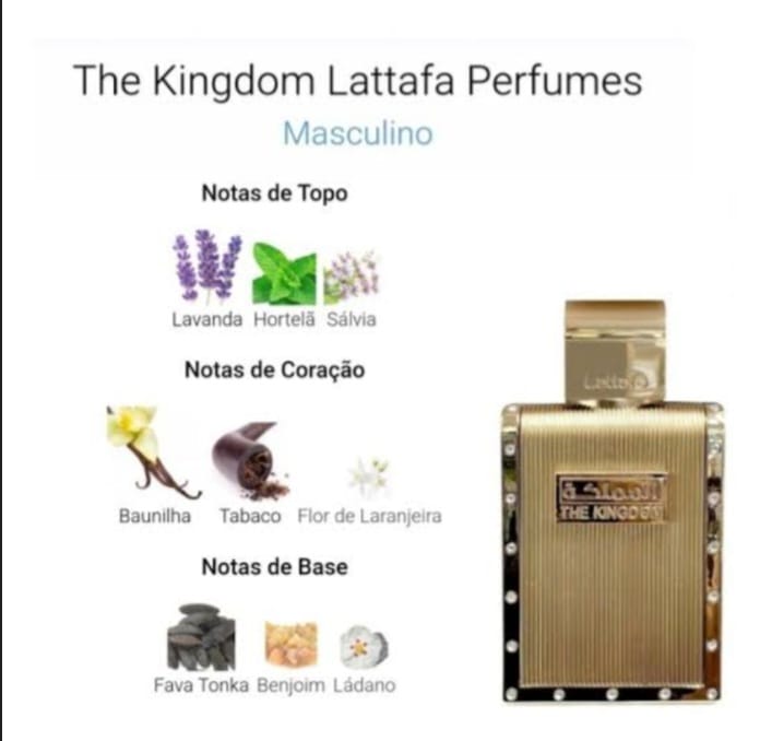 The Kingdom da Lattafa é uma fragrância masculina que evoca a realeza e o poder. Com sua composição rica e intensa, essa fragrância oferece uma experiência olfativa marcante e duradoura, perfeita para homens que buscam deixar sua marca por onde passam.